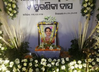 ସ୍ମରଣିକା ଦାସଙ୍କ ଏକାଦଶାହ ତିନିନମ୍ବର ସ୍ଥିତ ତାଙ୍କ ବାସଭବନ ପରିସରରେ ଅନୁଷ୍ଠିତ ହୋଇଯାଇଛି । ଏହି ଅବସରରେ ଆୟୋଜିତ ଶ୍ରଦ୍ଧାଞ୍ଜଳି ସମାରୋହରେ ଯୋଗଦେଇ ସ୍ମରଣିକାଙ୍କ ପରିବାର ପରିଜନ, ବନ୍ଧୁବର୍ଗ ଓ ଶୁଭେଚ୍ଛୁମାନେ ଶ୍ରଦ୍ଧାଞ୍ଜଳି ଅର୍ପଣ କରିଥିଲେ । ମଧ୍ୟ ଭୁବନେଶ୍ବର...