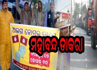 ସୋମବାର ପଶ୍ଚିମ ଓଡିଶାରେ ୧୨ ଘଣ୍ଟିଆ ମହାବନ୍ଦ ଡାକରା ଦେଇଛି କୋଶଳ ରାଜ୍ୟ ସମନ୍ୱୟ ସମିତି। ସ୍ୱତନ୍ତ୍ର କୋଶଳ ରାଜ୍ୟର ମାନ୍ୟତା ଦାବିରେ ଏହି ବନ୍ଦ ଡାକରା ଦିଆଯାଇଛି। ଆଜିର ବନ୍ଦକୁ ବିଭିନ୍ନ ଜିଲ୍ଲା ଓ ସଂଗଠନ ସମର୍ଥନ ଦେଇଛନ୍ତି।...